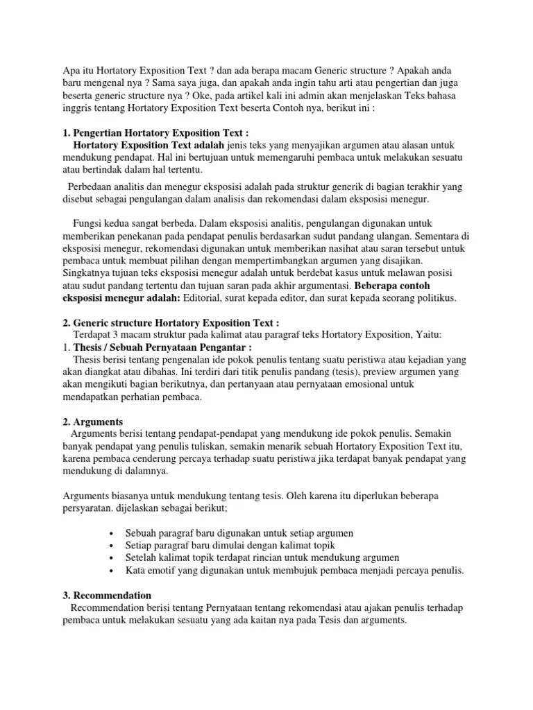 Apa Itu Teks Eksposisi Hortatory / 11 Contoh Hortatory Text Komplit Dengan Generic Structure English Admin - Hortatory exposition merupakan sebuah jenis teks bahasa inggris yang bersifat persuasif.